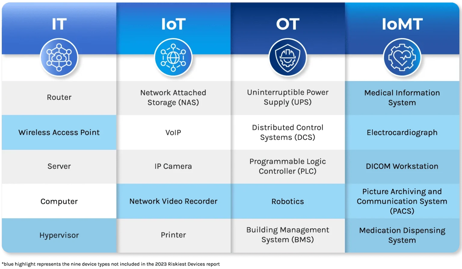 当社が2024年に実施した調査によると、今日のネットワークで最もリスクの高いデバイス資産は次のとおりです。